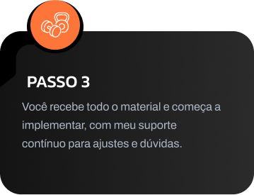 Você terá acesso direto a mim e minha equipe para tirar dúvidas e compartilhar sua evolução. Fazemos ajustes no protocolo conforme sua resposta, garantindo que você nunca fique estagnado.